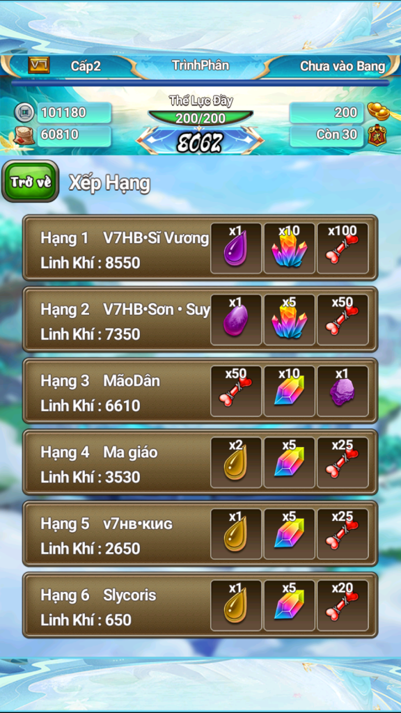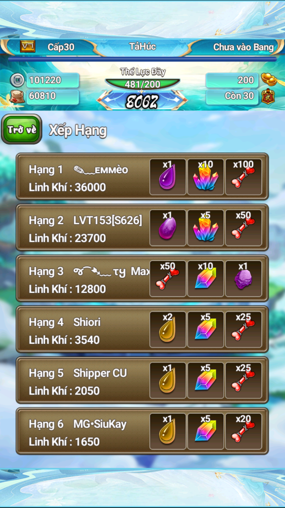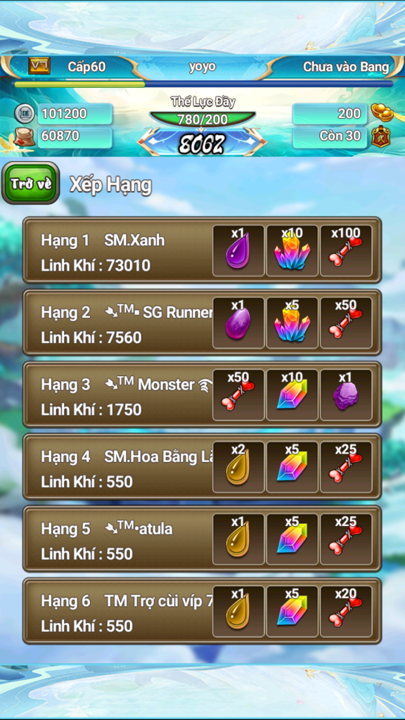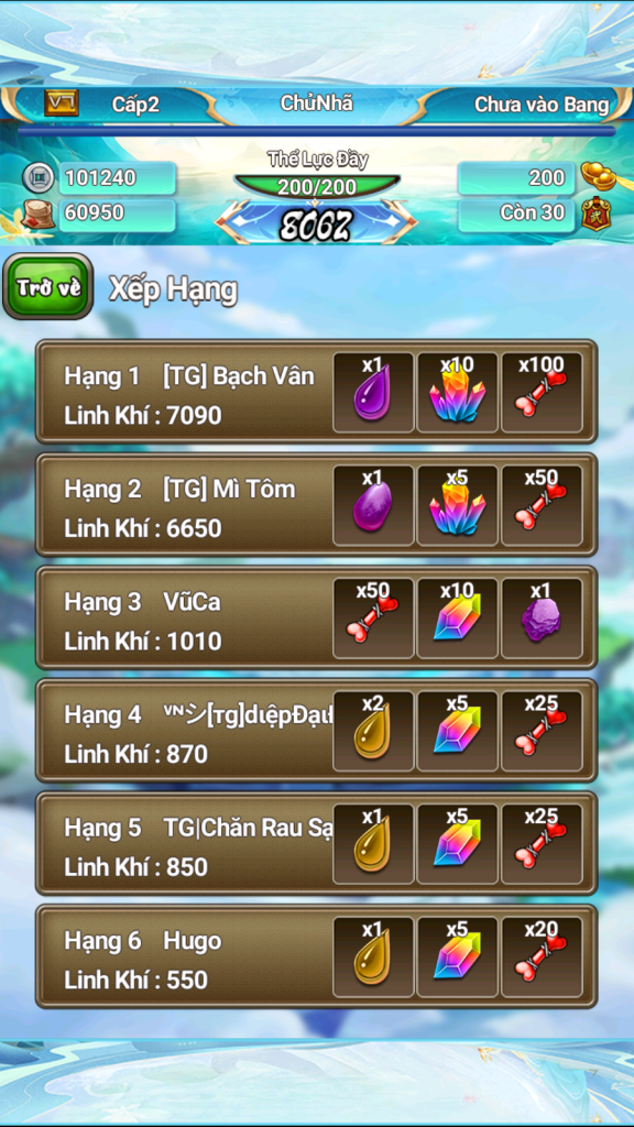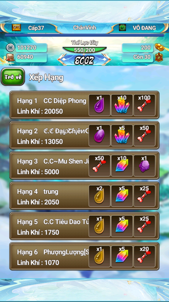 Xin được chúc mừng 3 vị sư huynh có số điểm tụ linh cao nhất sẽ nhận được phần thưởng đua top sự kiện!