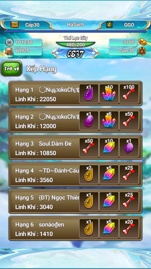 Vậy là sự kiện đua top tụ linh liên server diễn ra từ ngày  15/10 – 23H59 21/10 đã chính thức khép lại.