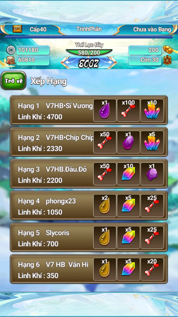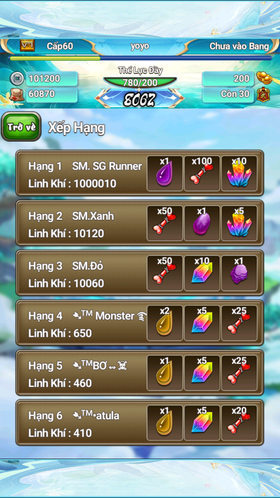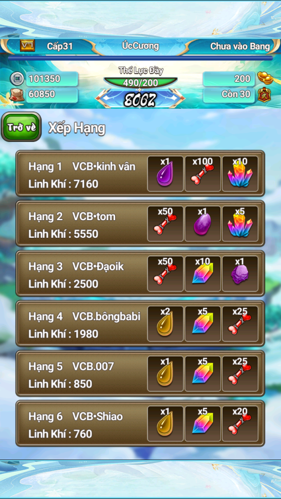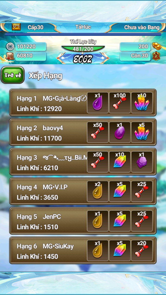 Xin được chúc mừng 3 vị sư huynh có số điểm tụ linh cao nhất sẽ nhận được phần thưởng đua top sự kiện!