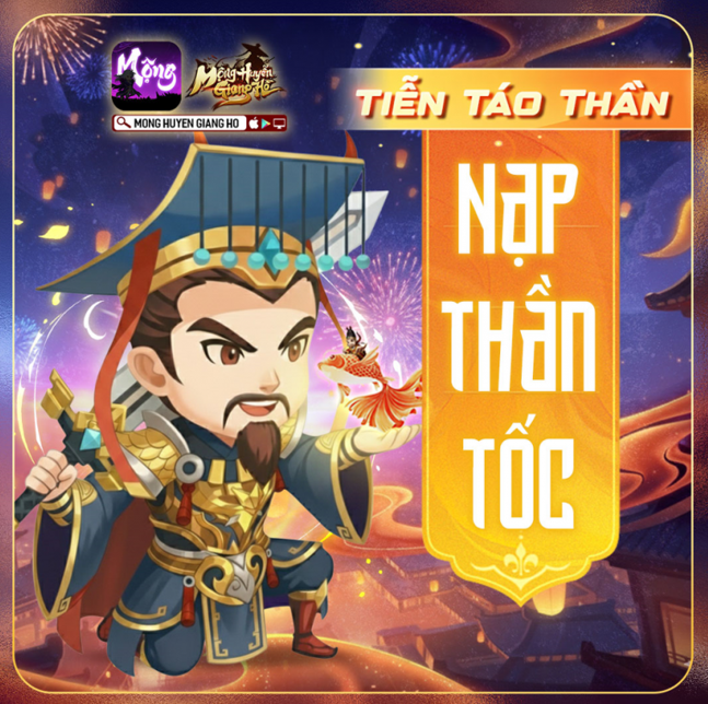 Các sư huynh thân mến, sư kiện NẠP THẦN TỐC – TIỄN TÁO THẦN diễn ra từ 0h15 -23h59 10.02 nằm trong chuỗi sự kiện đưa ông Táo về Trời với phần thưởng hấp dẫn.