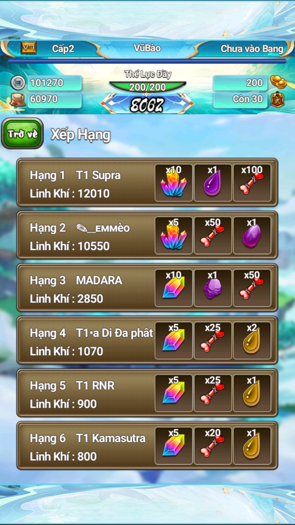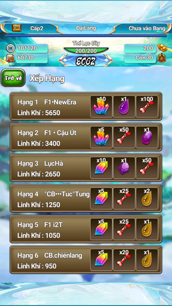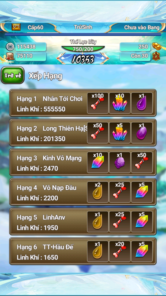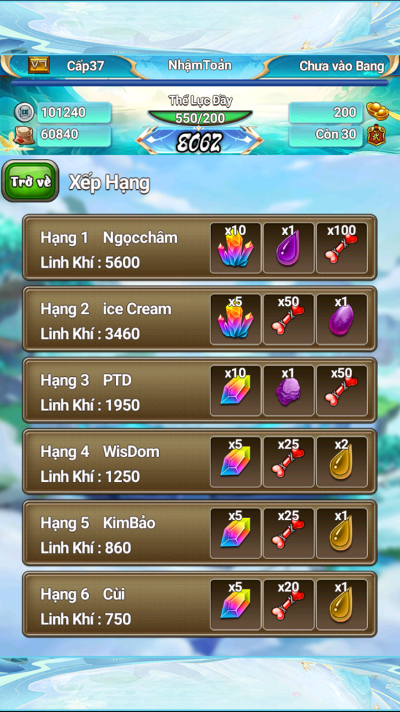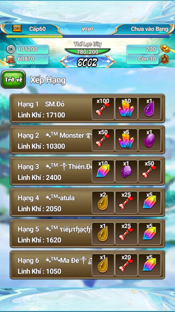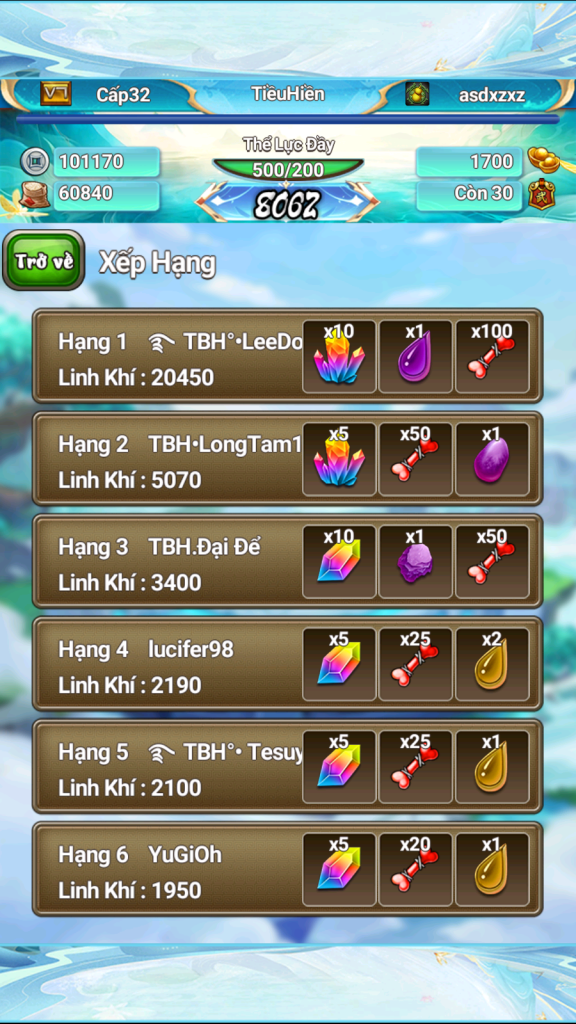 Xin được chúc mừng 3 vị sư huynh có số điểm tụ linh cao nhất sẽ nhận được phần thưởng đua top sự kiện!