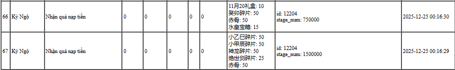 Sự kiện Đua Nạp Siêu Tốc- MỪNG GIÁNG SINH diễn ra từ  00h15 – 23h59 25.12 với phần thưởng hấp dẫn. Theo đó muội đã ghi nhận sự tham gia của cao thủ siêu tốc như sau: