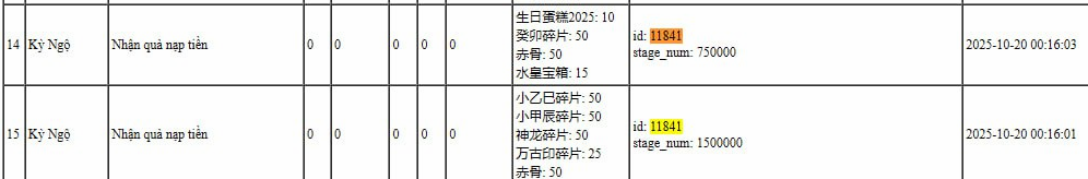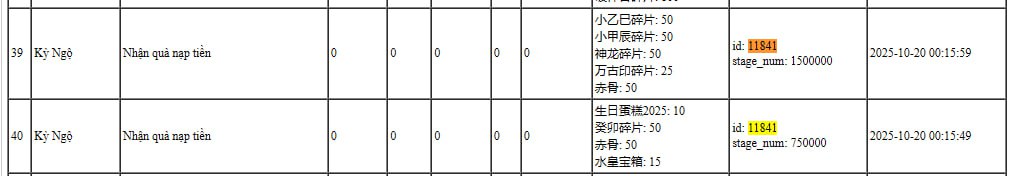 Thời gian nạp thành công mốc 20.000.000 (tương đương mức nhận tích lũy 1.500.000) sớm nhất