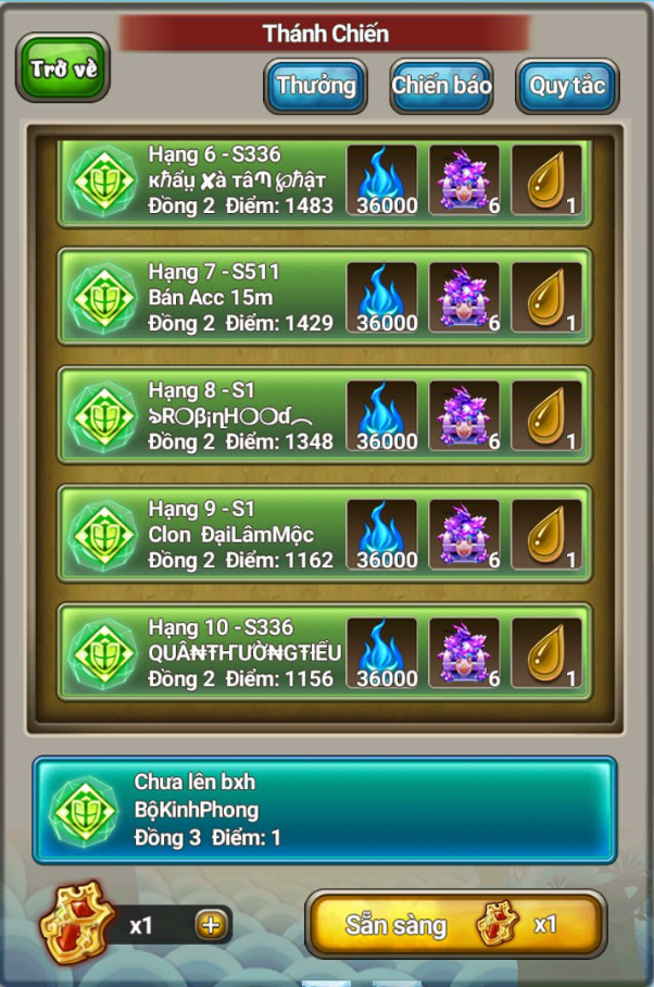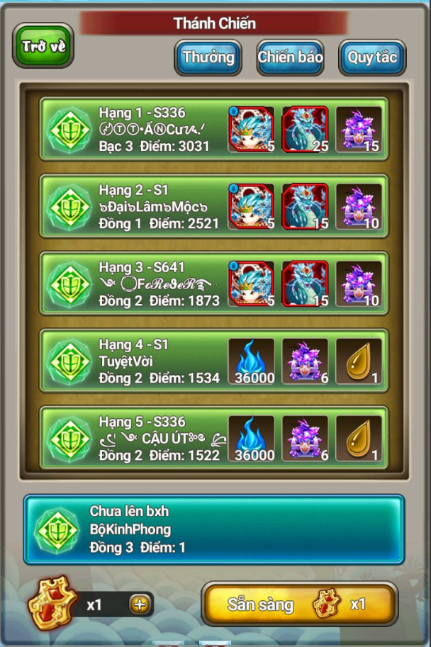 HạngTênMáy chủĐiểm
